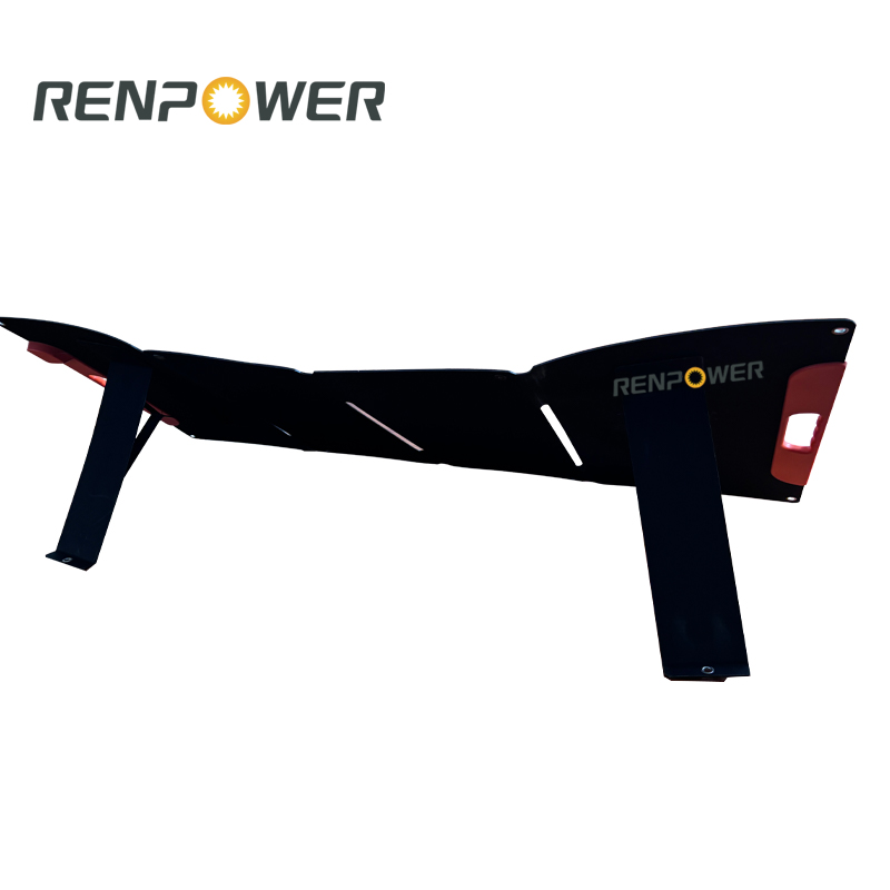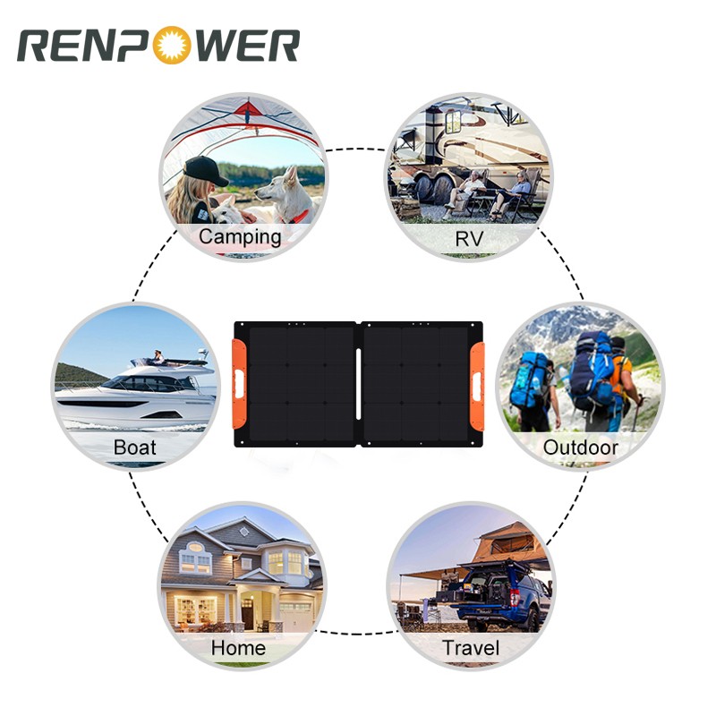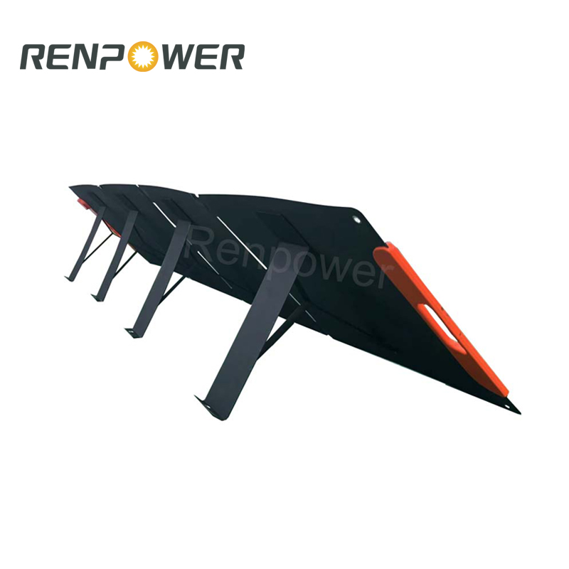 1.100W преносно склопување соларно ќебе е изработено од HPBC произведува повеќе енергија од соларни панели изработени од други елементи. HPBC носи висока ефикасност на конверзија до 25%, а излез од 100W може да ги задоволи повеќето потреби за полнење на отворено.