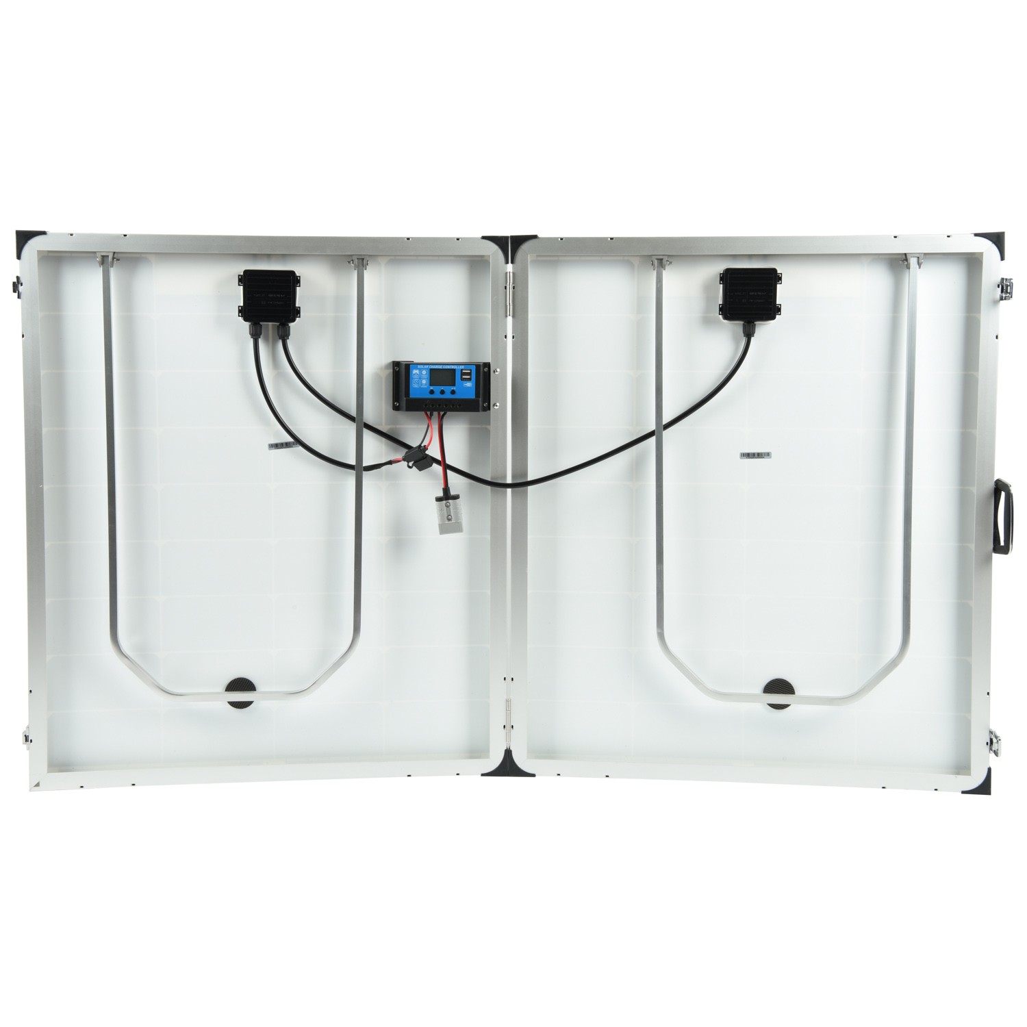 1) RENPOWER 300 Watt преклоплив соларен панел е вградена тешка рачка и брави за долговечност, може лесно да се преклопува и пренослив. Прилагодливите и отпорни на корозија алуминиумски држачи ви овозможуваат да добиете агол за да привлечете што е можно повеќе сончева светлина.