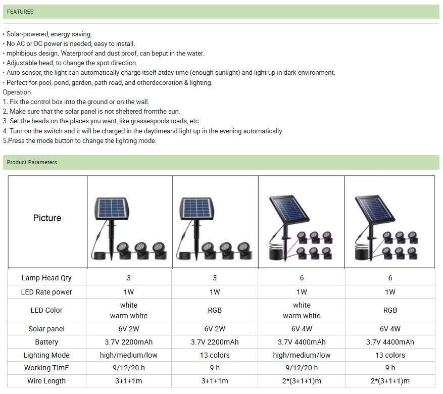 Нови соларни LED светла IP68 Сончеви подводни светла на отворено градинарски базен Декоративно осветлување